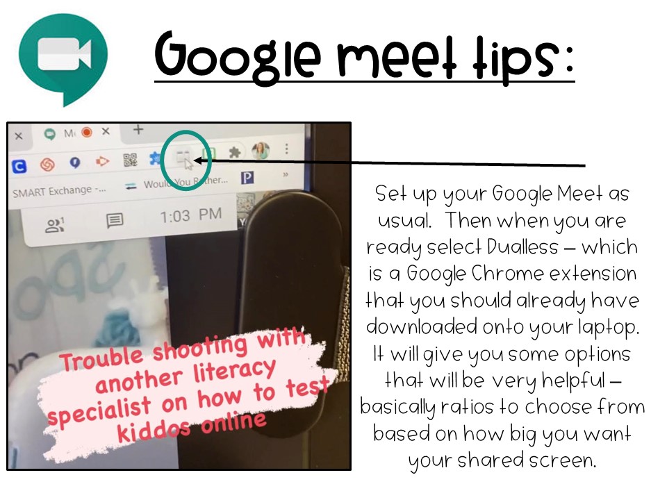 Be sure to visit the Chrome extension store and grab Dualless. It will give you options for sharing your screen easily in Google Meet.